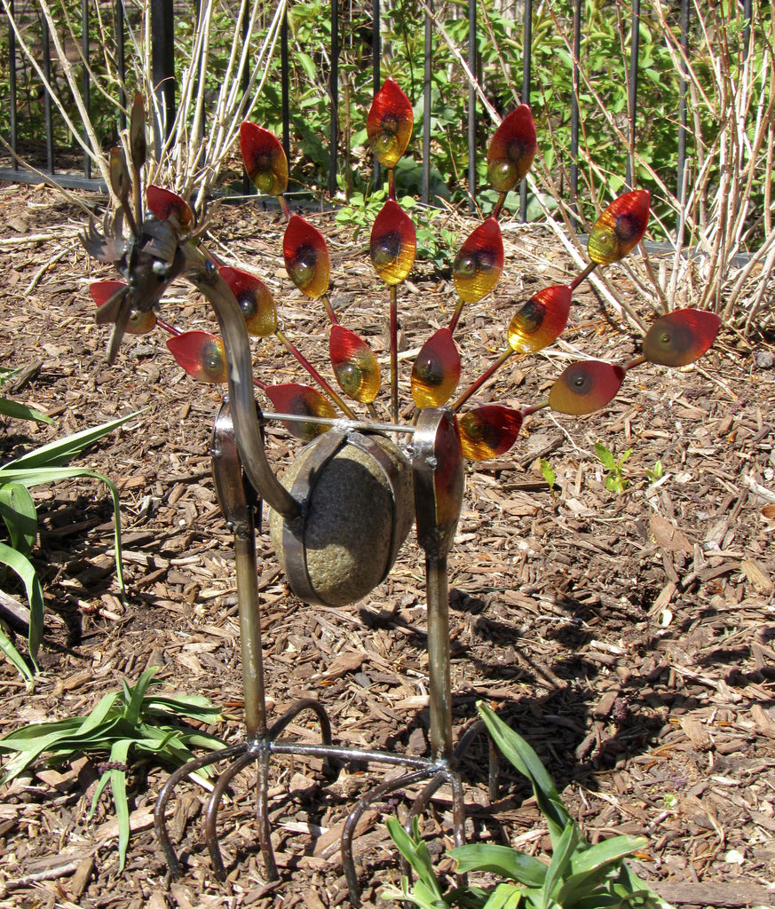 Metal Peacock With Rock