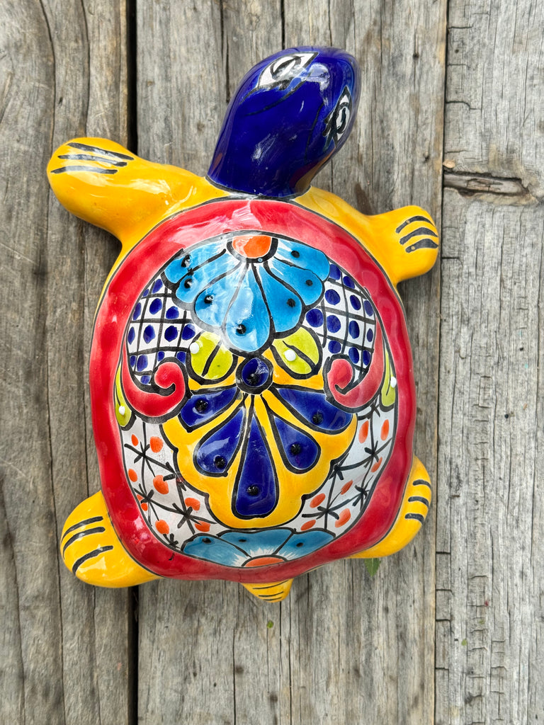 This Talavera Turtle Wall Decor is expertly hand-painted, and offers dimensions of 8" x 6" for an eye-catching statement piece. Due to the hand-crafted nature of this stunning accent, the size and color of the one you receive may vary slightly from what is pictured.